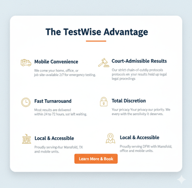 From court-admissible DNA testing to mobile drug screens and fingerprinting, we provide professional laboratory services across the DFW Metroplex and Fort Wayne.