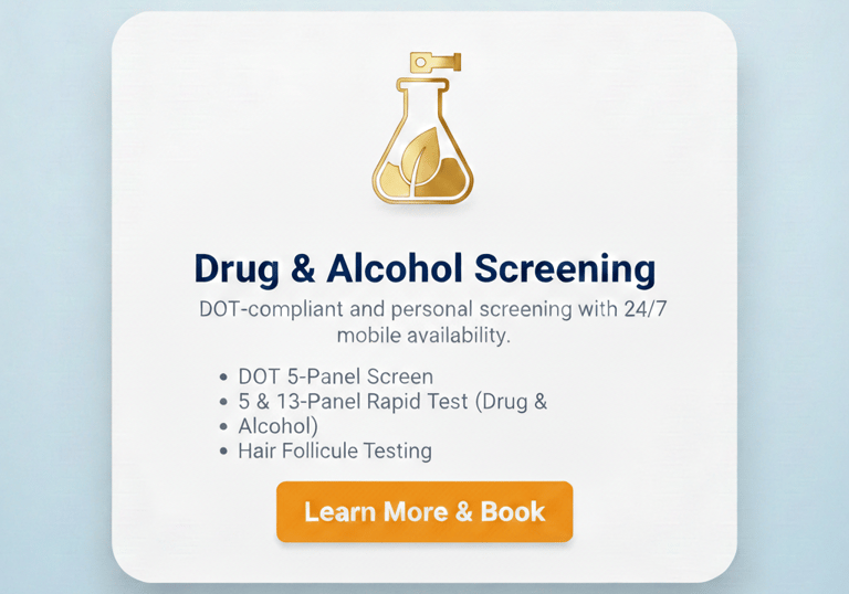 DOT-compliant and non-DOT testing for individuals and employers. We offer both in-office and 24/7 mobile on-site collections